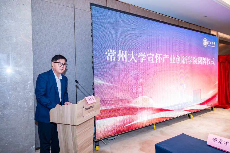 李忠玉代表学校作表态发言。他表示,宣怀产业创新学院将聚焦新兴产业领域,构建跨学科、跨专业的课程体系和教学模式,引入科技成果转化实践项目和真实案例,重点培养拔尖创业人才,打造集教学、科研、实践、孵化于一体的产教融合平台,促进教育、科技、人才良性循环。